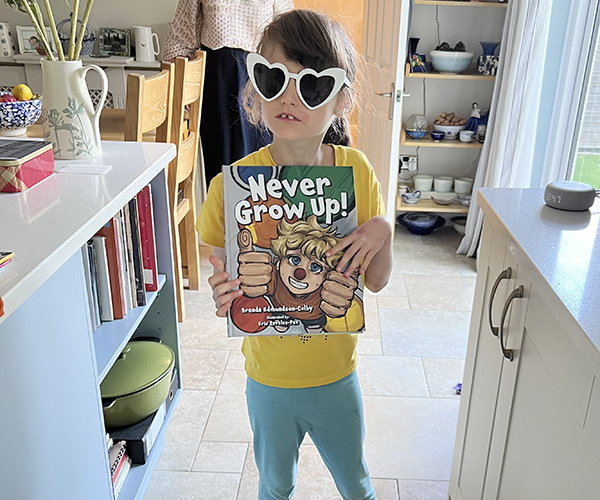 Never Grow Up! teaches us to retain our childlike wonder of the world. Jimmy, the narrator and my husband, was a firm believer in never growing up–and he never did. His childlike wonder inspired others to live a life of fun and joy in spite of difficult times. The dialogue in this book encourages readers to interact with Jimmy, sharing answers about feelings as Jimmy asks questions. Adults and children will learn from each other as they read the book together, which offers a message of hope to both younger and older readers, and a promise that someone is always there to help you. Never Grow Up! shows us all that there truly is light at the end of the tunnel.